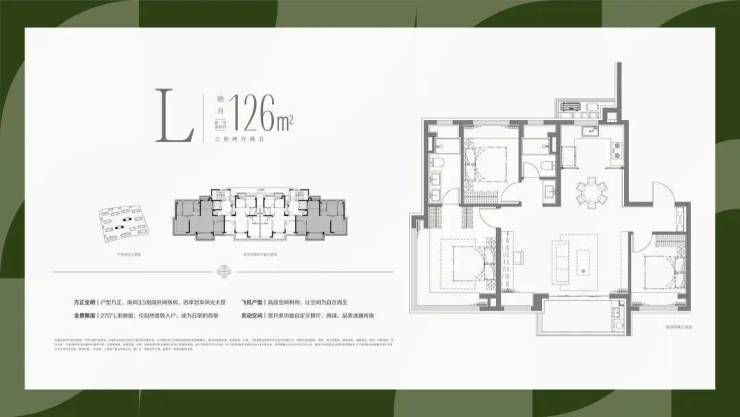 建面约89•、103-◁、126m²部分户型设计了270°全景视野的L型飘窗○;建面约99㎡户型设计了转角阳台,引园入室,景观视野更震撼,带来IMAX级视觉体验!