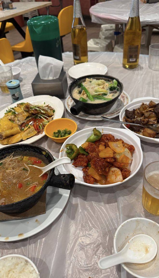 喝完咖啡、歇足了劲◁-◁,接下来就是子女回港的固定保留项目——去海边吃海鲜。对苗家来说,这趟行程就像“回家标配▪==”◁•,每次子女回来都少不了●-◇,主打一个=○“接地气、寻本味”★●。他们来到海边的渔市旁…,围着新鲜打捞上来的海货摊位仔细挑选,苗侨伟还亲自上手翻看螃蟹的活力…-▽、闻闻海虾的鲜度,跟摊主熟络地讨价还价★■,完全没有明星架子▷◁;选好海货后,直接现场点单,交给周边的大排档帮忙加工,要的就是这份现选现做的新鲜劲儿。从苗俊晒出来的照片能看出来,这顿海鲜大餐没啥精致的摆盘,就是普通的大排档菜式,清蒸海虾、姜葱炒蟹○、蒜蓉粉丝扇贝○,都是最家常的做法;用餐环境也很简单,就是大排档门口搭的简易遮阳棚,摆着几张塑料桌椅,但这样的环境恰恰最有烟火气,也最能吃出家乡的味道。苗侨伟还特意点了几瓶本地啤酒■,拧开瓶盖跟子女碰杯,一边吃着海鲜,一边聊着加拿大的生活和香港的近况,欢声笑语不断▷▪▽,小日子过得比谁都滋润□▪。