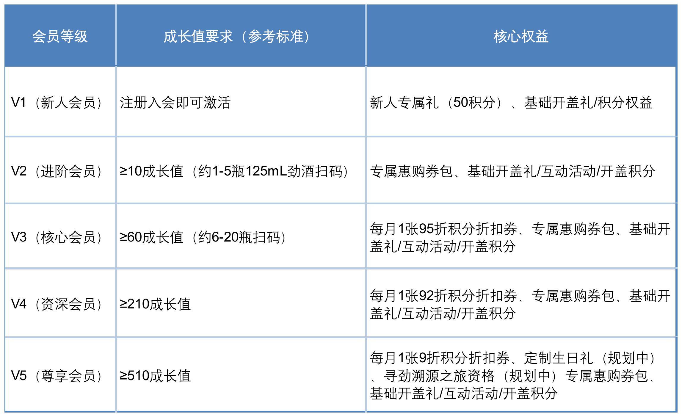 以▷△“成长值”为核心指标构建会员体系(V1-V5),成长值通过扫码消费••◆、小程序互动(签到、浏览等)积累,等级越高权益越丰厚▷,实现从△“短期消费者▼”到-“长期忠实用户☆”的转化: