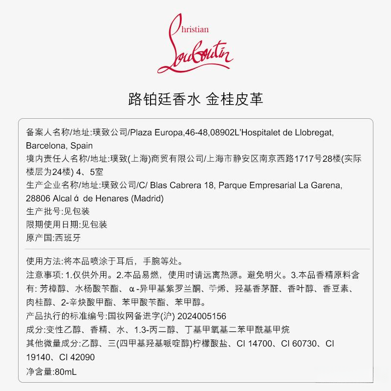 路铂廷香水的种类多样,涵盖浓香水EDP等不同类型▲▪▷,满足了消费者对不同香调与场合的需求。例如,椰香乌木的木质香调与晚香琥珀的温暖度提供了丰富的选择,同时瓶身设计灵感来源于芭蕾舞鞋•-,体现了品牌永恒的艺术魅力,使得每款香氛都有独特个性▪。