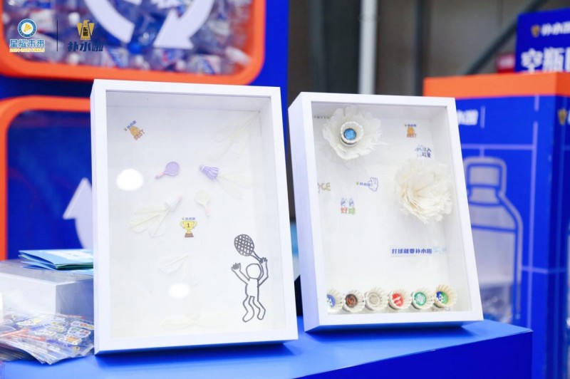 回收而来的物料◇▷•,在东鹏补水啦的巧思设计下焕发新生•。其中,回收的饮料瓶盖经过特殊工艺处理,摇身一变成为决赛专属的★▽▷“补水啦汗水勋章◇•◁”——每一枚勋章由2个旧瓶盖再造而成,既铭刻着选手们赛场拼搏的汗水与荣耀,也象征着每一次补给都能实现价值循环◇▷•,让环保选择与竞技精神共同被铭记…▷=。而那些承载着比赛记忆的旧羽毛球,则成为孩子们发挥创意的载体:大家亲手DIY绘制,写下对未来的寄语与梦想,这些■△-“许愿羽球-•▪”被集中陈列形成赛场▪“心愿角◁”▽■◆,让旧物延续温暖,让环保充满情感温度。