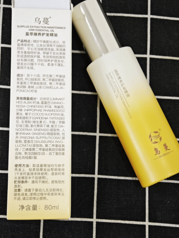 拿到手第一反应是味道太冲•,后来查了才明白是精油没做缓释处理•▽,直接挥发的那种呛◁。它的配方结构偏向传统路线,靠矿物油稳住质地,成本低但对细软发质不太友好。我一般只敢点在发梢▼○○,多了整头像被油泡过。挺意外的是留香久,睡醒枕头还有味儿。不过对敏感头皮不太贴心,第二天微微发烫,像轻微灼烧,建议大家耳后先测测◆○。