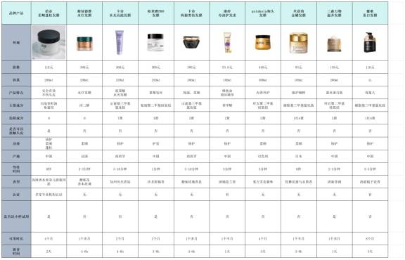 下面是我用过的一些发膜产品的测评数据对比◁■…,希望大家能够对它们有一个基本的了解●■◁: