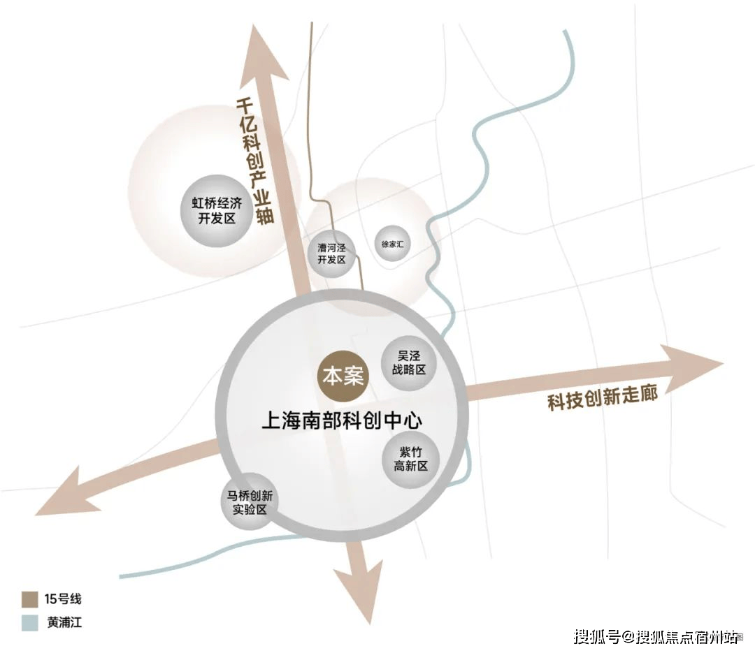 也正是凭借15号线和虹梅路高架,项目北接漕河泾科创园和新晋高水平科学策源地华泾,南接大零号湾,
