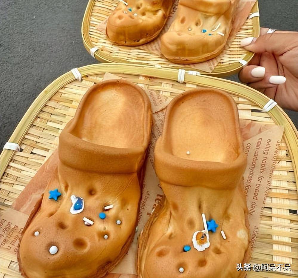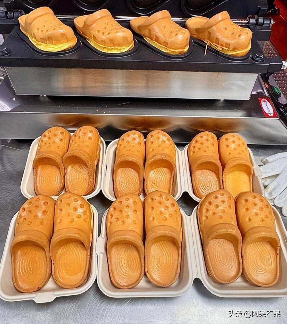 “洞洞鞋鸡蛋仔”便是典型代表,商家采用塑料鞋模作为烤制容器,将普通鸡蛋仔包装成•“网红单品”,定价68元一份□。