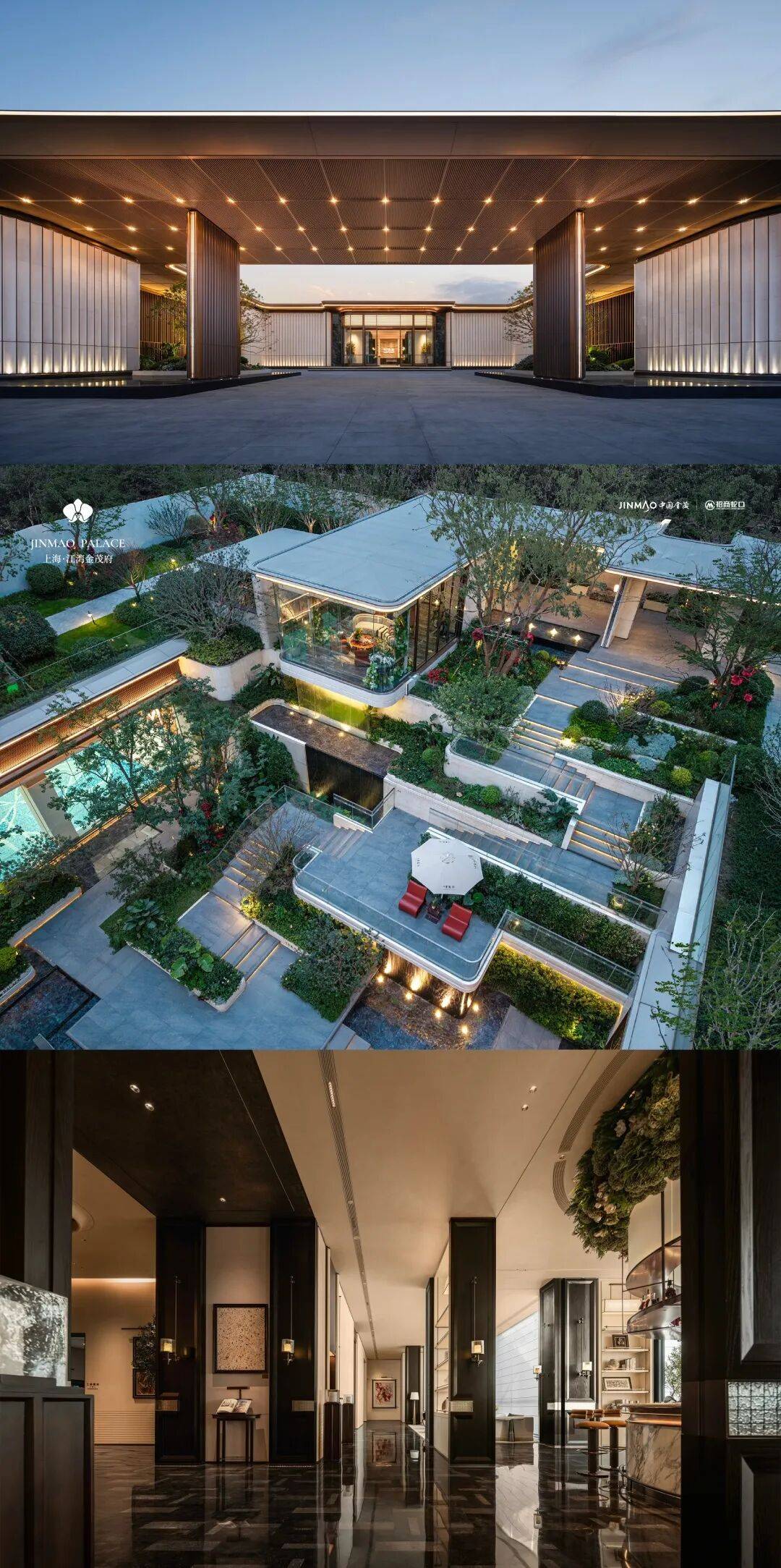 ② 立体园林,折叠自然的沉浸剧场 当行业仍在比拼绿化率时,江湾金茂府已向前一步,打造出北上海罕见的“云台叠境”立体景观。通过三重台地巧妙折叠,融入跌级水景、观景平台、下沉卡座与女王花厅,行走其间,步移景异。这不仅是对土地的高维利用,更是将顶奢度假酒店的隐秘感与仪式感,引入日常的社区场景。