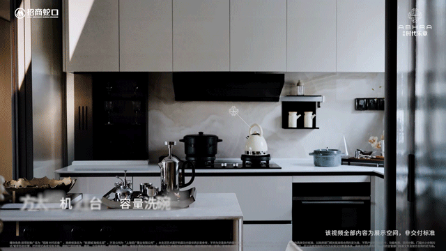 餐厨空间作为家庭生活的高频使用的场域,怎样的厨作和用餐体验至关重要。招商时代乐章艺术化的再造传统餐厨空间,