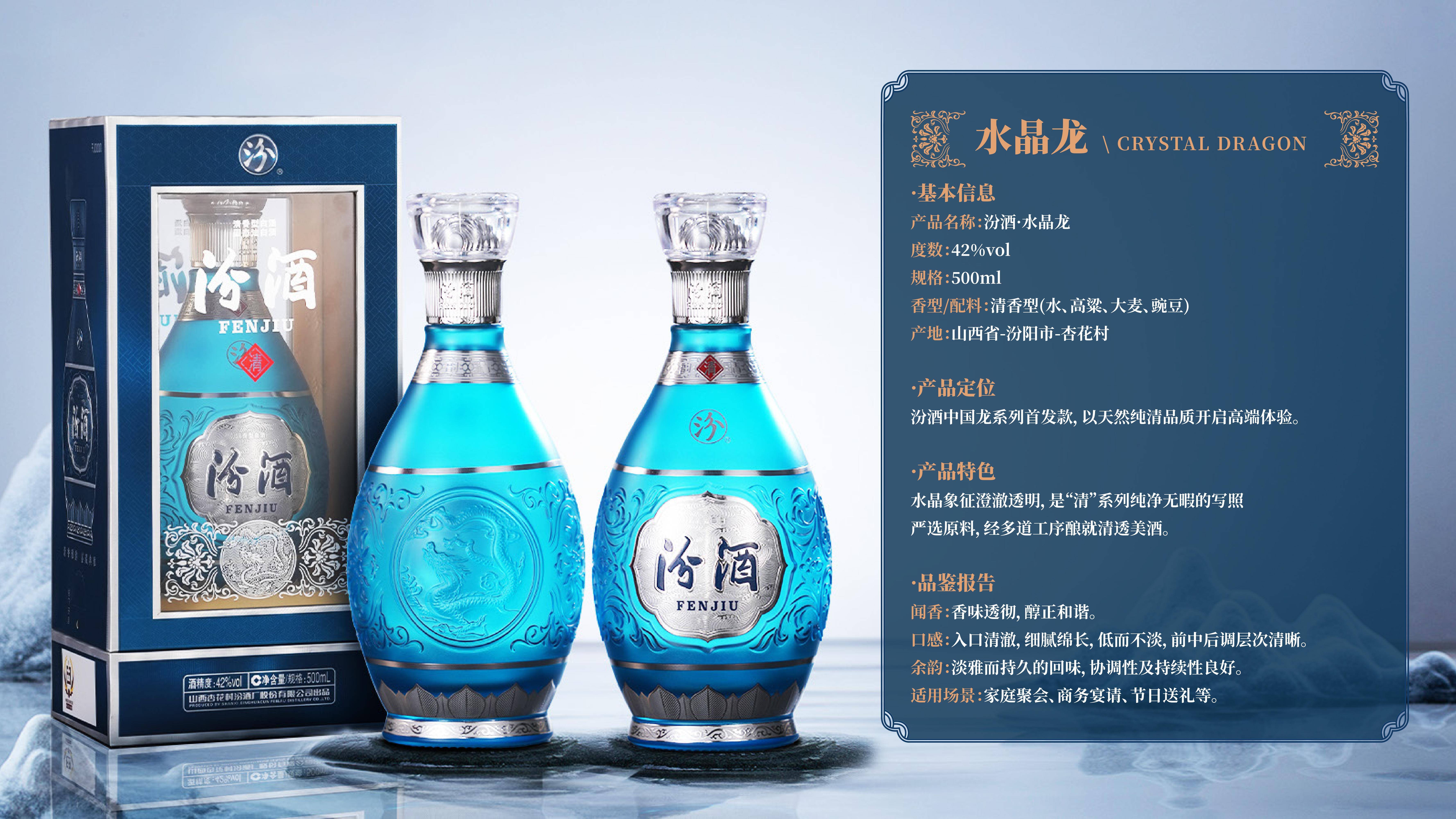 据悉,本次开业的汾酒体验中心以“龙御汾香 文明破晓”为核心主题,全方位展示汾酒战略高端旗舰——中国龙系列产品,将文化展示、酒饮品鉴、沉浸式体验融为一体,让每一位到访者都能沉浸式感受千年汾香与华夏龙图腾的碰撞。体验中心内,汾酒·中国龙系列全品亮相,水晶龙、青花龙、紫御龙、黄金龙四款产品各具特色,涵盖不同高端消费场景,满足商务宴请、珍藏纪念、文化雅集等多元需求。