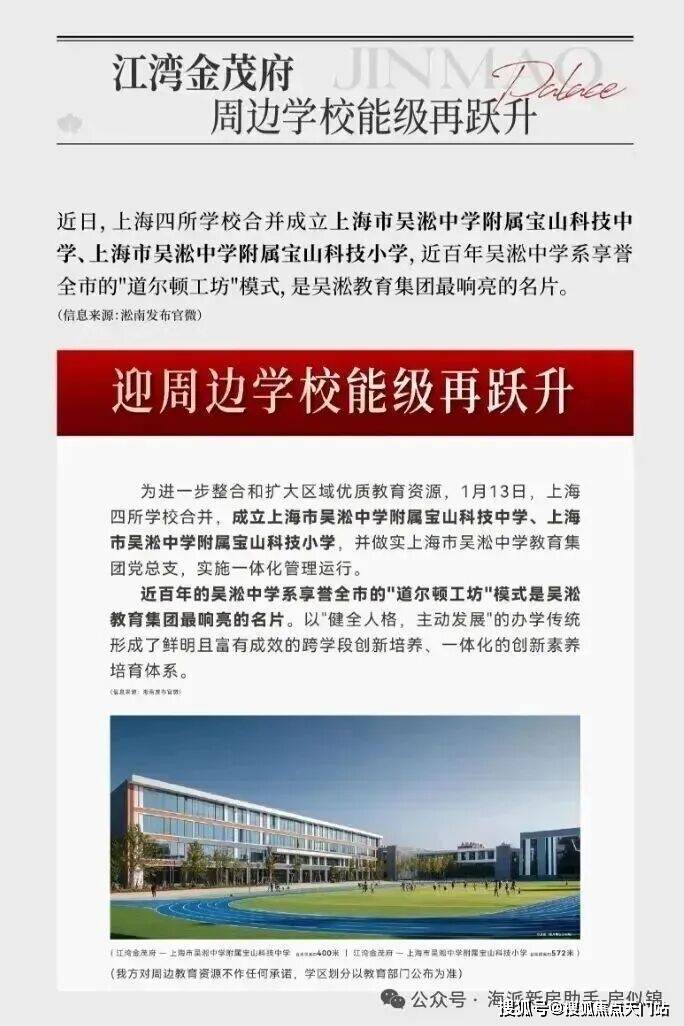 除了肉眼可见的交通利好,周边的教育也迎来利好。2026年1月13日,区域教育迎来里程碑事件:上海四所学校合并,成立上海市吴淞中学附属宝山科技中学、上海市吴淞中学附属宝山科技小学,并做实上海市吴淞中学教育集团党总支,实施一体化管理运行。